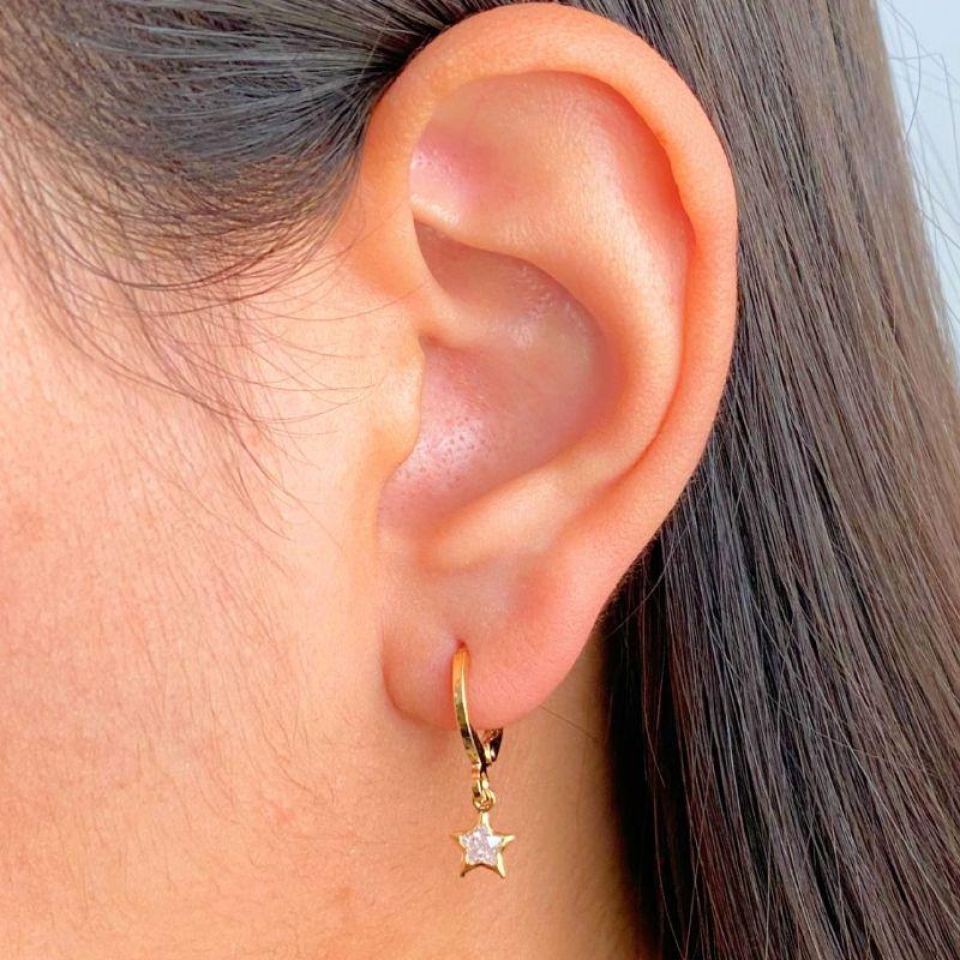ARGOLA COM PINGENTE DE ESTRELA CHAPA LISA...