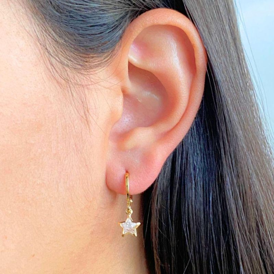 ARGOLA COM PINGENTE DE ESTRELA CHAPA LISA...