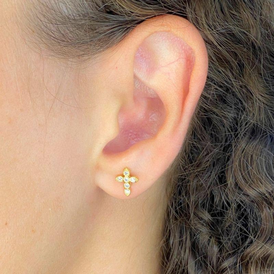 BRINCO PEQUENO FLOR 5 PETALAS 2 CRAVEJADA ...