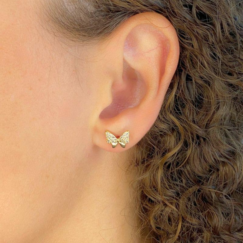 BRINCO PEQUENO FLOR 5 PETALAS 2 CRAVEJADA ...